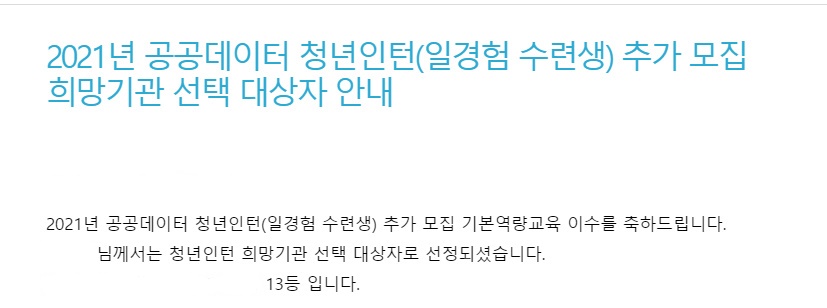 공공데이터 청년인턴(일경험 수련생) 지원 후기(3)