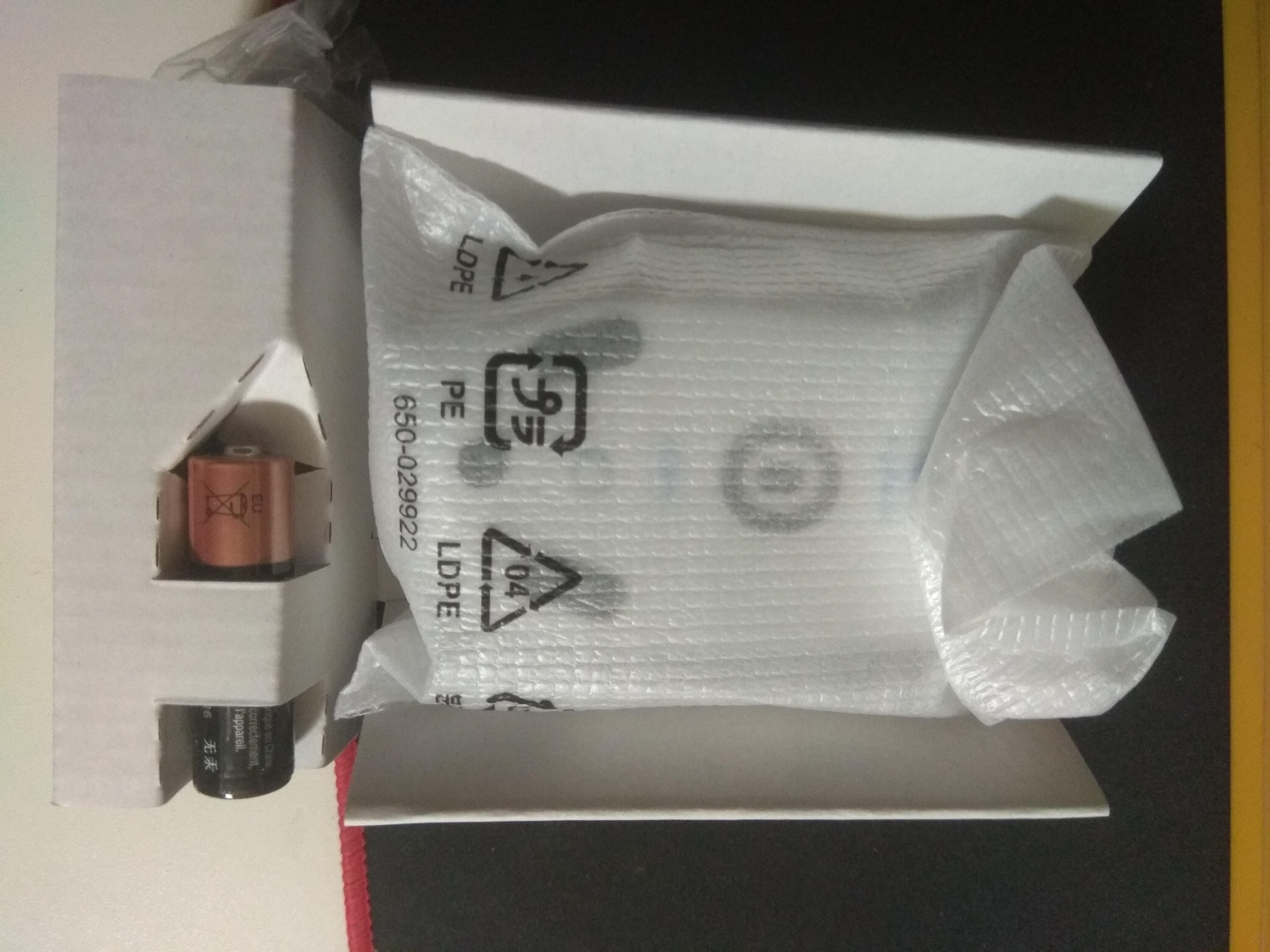 당연하긴 하지만 박스를 열어보면 바로 사용할 수 있도록 AA 건전지 하나가 들어있습니다.