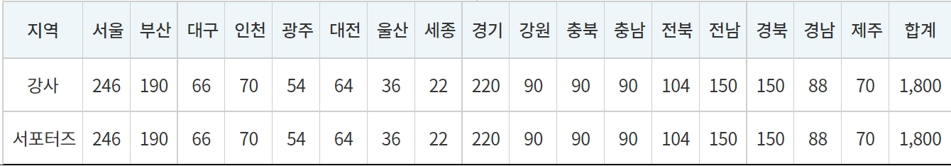 지역별로 채용 일정이 정해져 있기도 하고 상시로 채용하는 지역도 있습니다. 제가 살고 있는 지역에서는 수시채용을 진행하고 있고 구직사이트에 공고가 따로 올라와서 지원했습니다. 지원은 입사지원처럼 별도의 지원 사이트에서 진행하였고 어려운 문항은 없었습니다. 이력서 작성하는 것처럼 작성을 하고 나서 교육 가능한 내용, 근무 가능한 시간, 근무가능한 지역처럼 간단한 내용을 물어보는 문항이 있습니다. 서류합격 발표는 2주 정도 소요되었고 면접 후 최종 발표까지는 1주 정도 소요되었습니다. 다음 글에서는 면접 후기와 활동 후기에 대한 글을 써보겠습니다. 감사합니다.